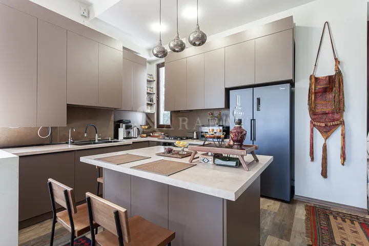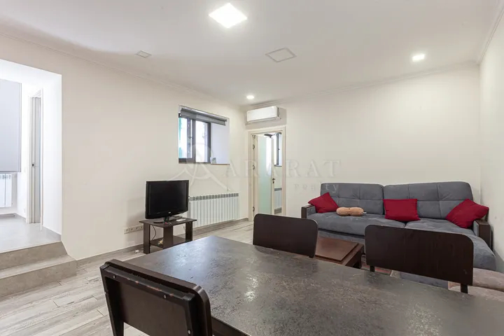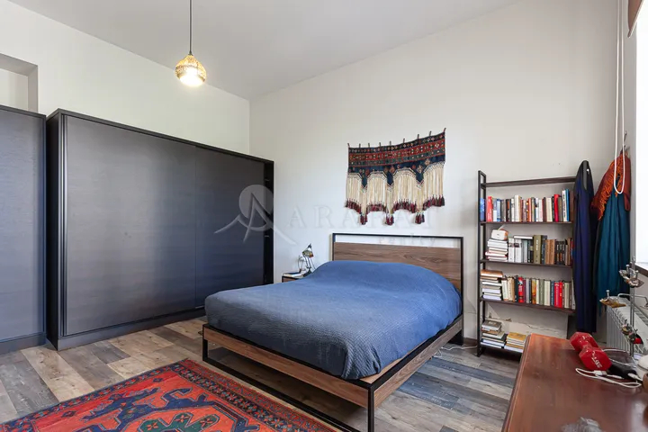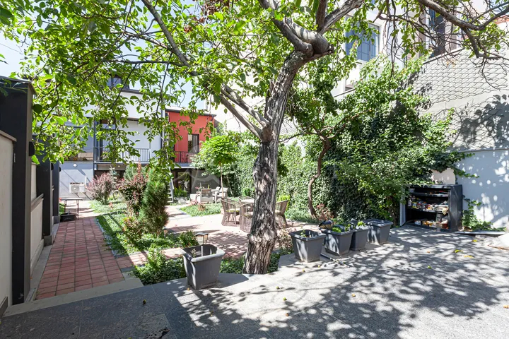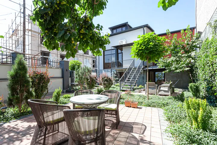 The private house is located in the Kentron district, near Alek Manukyan Street, close to Vernissage. It is a two-story house with an additional attic floor. The house is comfortable and divided into separate rooms. It features a large landscaped yard, two spacious balconies, and a heating system. The location and layout also make it suitable for use as a guesthouse