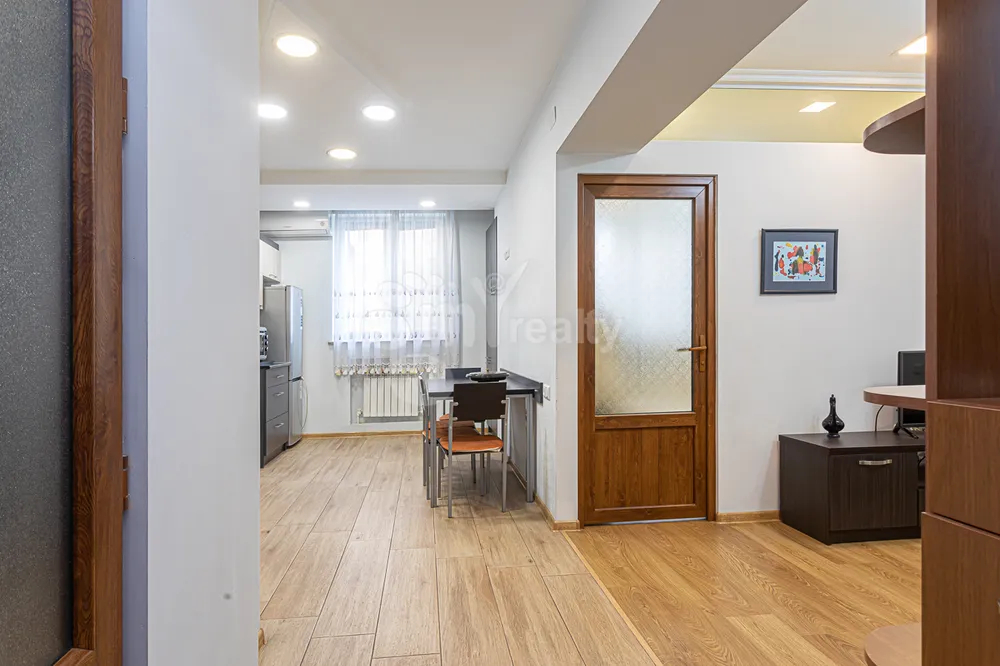 The apartment is located at the intersection of Saryan and Amiryan Streets, near the park. It is renovated and features heating and cooling systems.