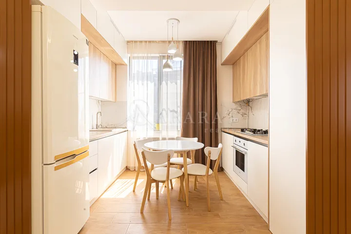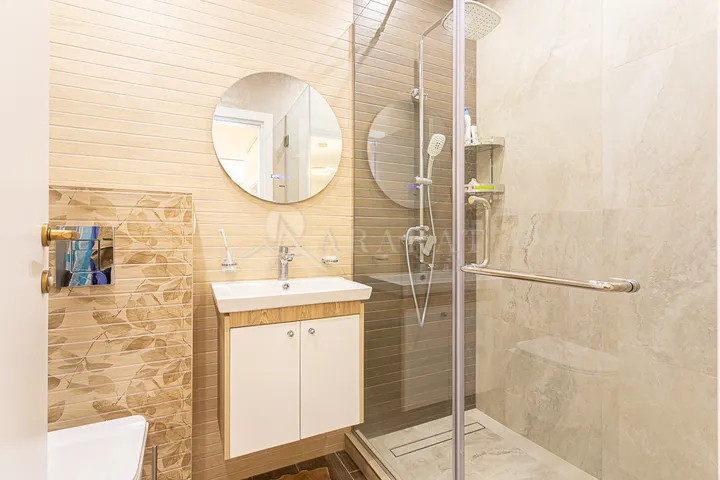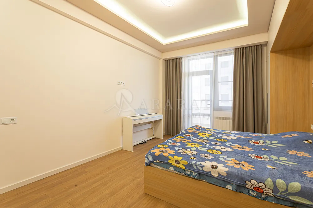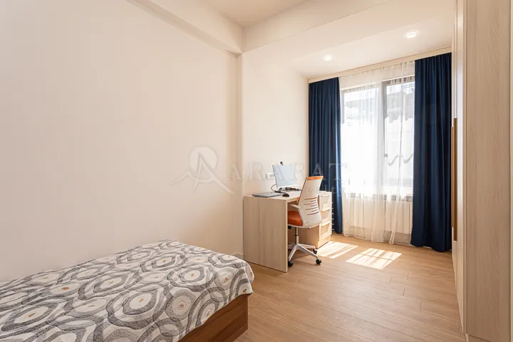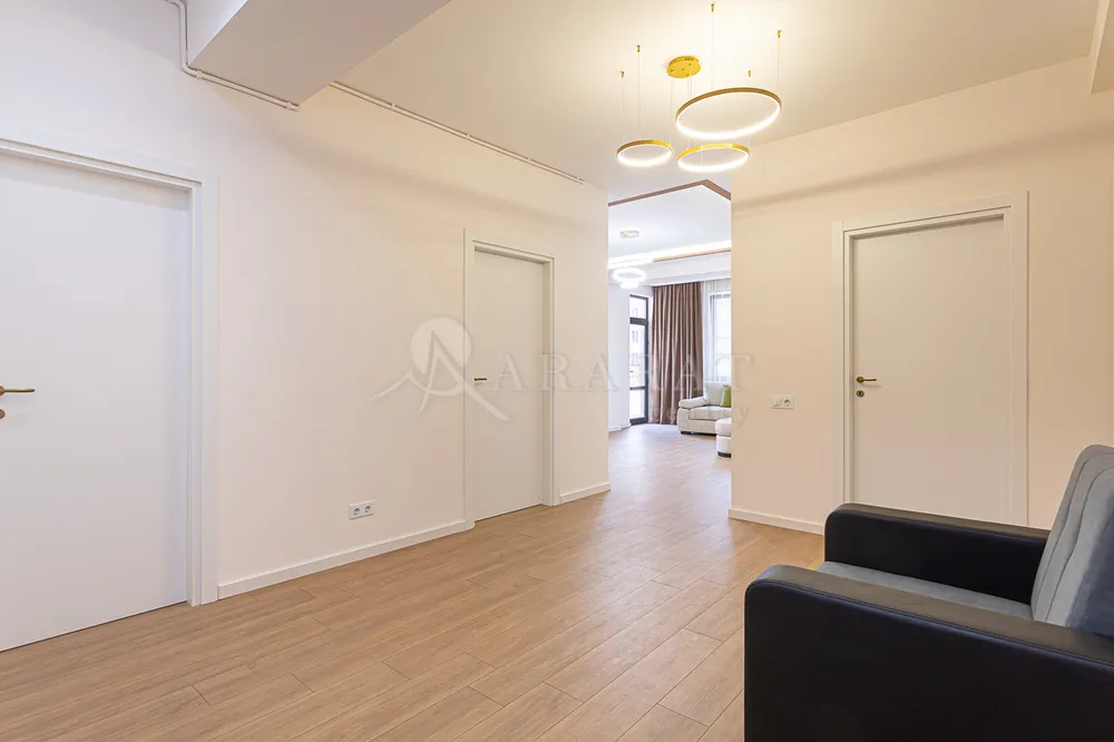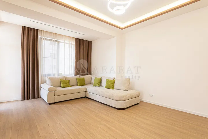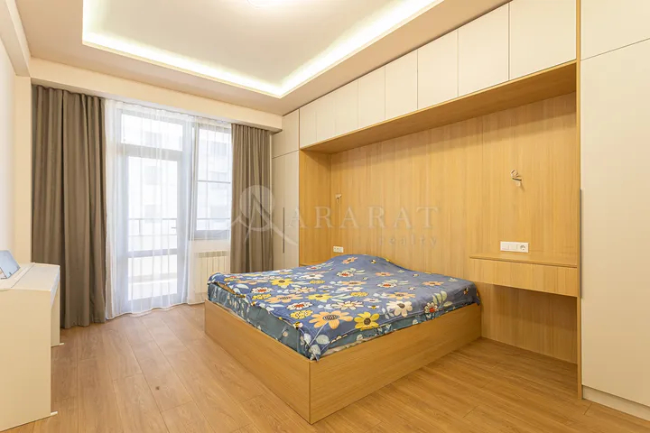 Վաճառվում է 5 սենյականոց բնակարան «Ճառագայթ» Բնակելի Համալիրում՝Ադոնցի փողոցում։ Բնակարանը գտնվում է 14 հարկանի նորակառույց շենքի 6րդ հարկում,որի ընդհանուր մակերեսը կազմում է 122 ք.մ․։Բնկարանը վերանորոգված է դիզայներական ոճով և կահավորված է որակյալ գույք-տեխնիկայով։Բնակարանը գտնվում է արևկող դիրքում,բաղկացած է՝ 3 լիարժեք ննջասենյակներից,որոնցից մեկն ունի սանհանգույց և բաց պատշգամբ,1 աշխատասենյակից,հյուրասենյակ խոհանոցի հետ միասին և բաց պատշգամբ,ընդարձակ նախասրահ,որտեղ առկա է ընդհանուր սանհանգույց։
