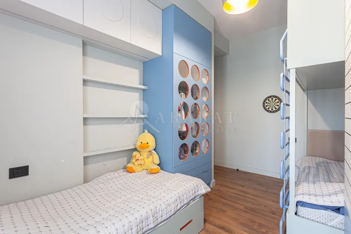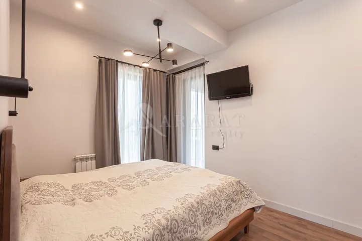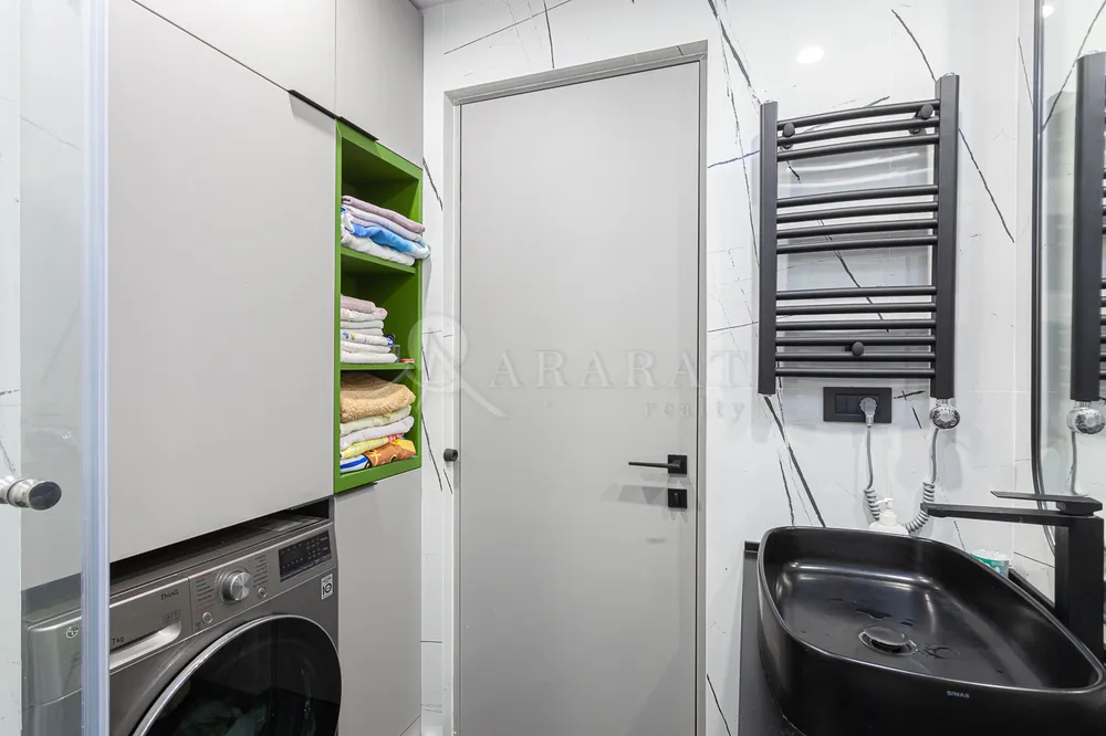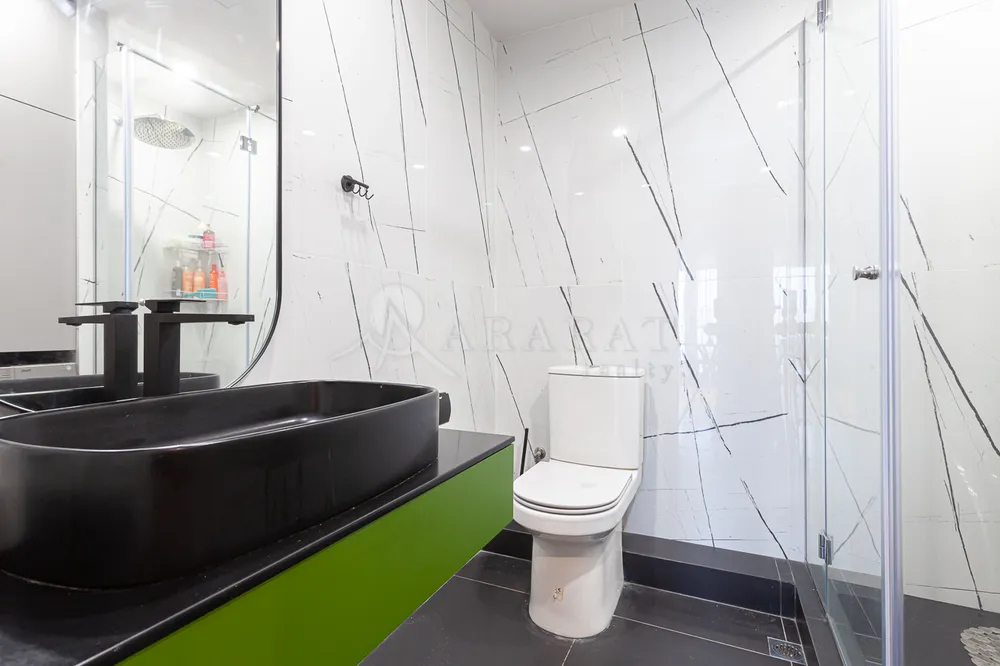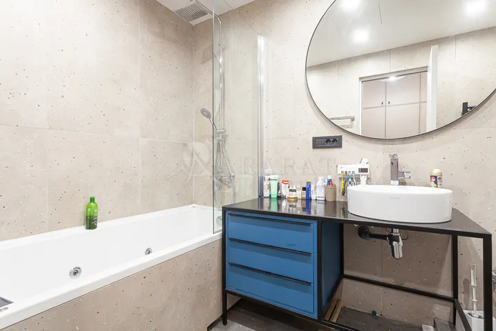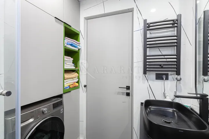 Բնակարանը գտնվում է 13 հարկանի նորակառույց մոնոլիտ շենքի 10րդ հարկում։ Ընդհանուր մակերեսը 104քմ է, առկա է 3 ննջասենյակ բնական լուսավորությամբ, մեծ և ընդարձակ հյուրասենյակ, բաց պատշգամբ, առանձին ընդարձակ խոհանոց, 2 սանհանգույց։ Տեղադրված է անհատական ջեռուցման համակարգ և օդորակիչ, միջանցքի, խոհանոցի և սանհանգույց լոգարանի հատակը տաքացվող է։ Բնակարանի վերանորոգումը գտնվում է շատ թարմ վիճակում քանի որ օգտագործվել են բացառապես որակյալ նյութեր։ Շենքի բակը բարեկարգ է, մոտակայքում առկա են բոլոր անհրաժեշտ ենթակառուցվածքները, սուպերմարկետներ, բանկեր, ժամանցի վայրեր, դպրոց, մանկապարտեզ։ Վաճառքի արժեքը ներառում է ամբողջ կահույքը և տեխնիկան ինպես նաև ստորգետնյա ավտոկայանատեղի։