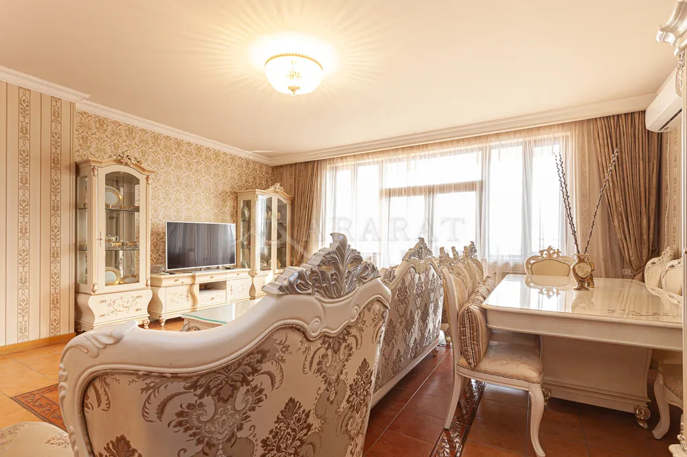 Վաճառվում է կապիտալ նորոգված 3 սենյականոց բնակարան Սայաթ-Նովա պողոտայի նորակառույց շենքում։ Գտնվում է 18/7-րդ հարկում։ Ընդհանուր մակերեսը կազմում է 130 քմ, ունի 2 ննջասենյակ, հյուրասենյակ, առանձին խոհանոց, 2 բաց պատշգամբ՝ գեղեցիկ տեսարանով։ Բնակարանը վաճառվում է մասնակի կահույքի և տեխնիկայի հետ միասին։ Առկա է ավտոկայանատեղի՝ հավելավճարով։