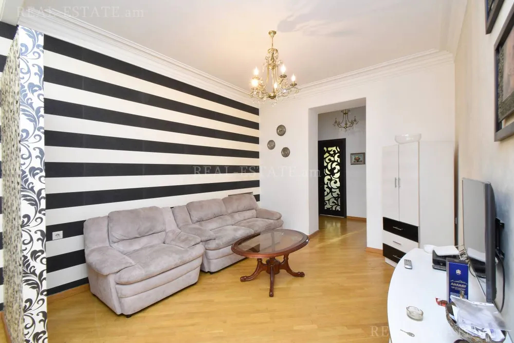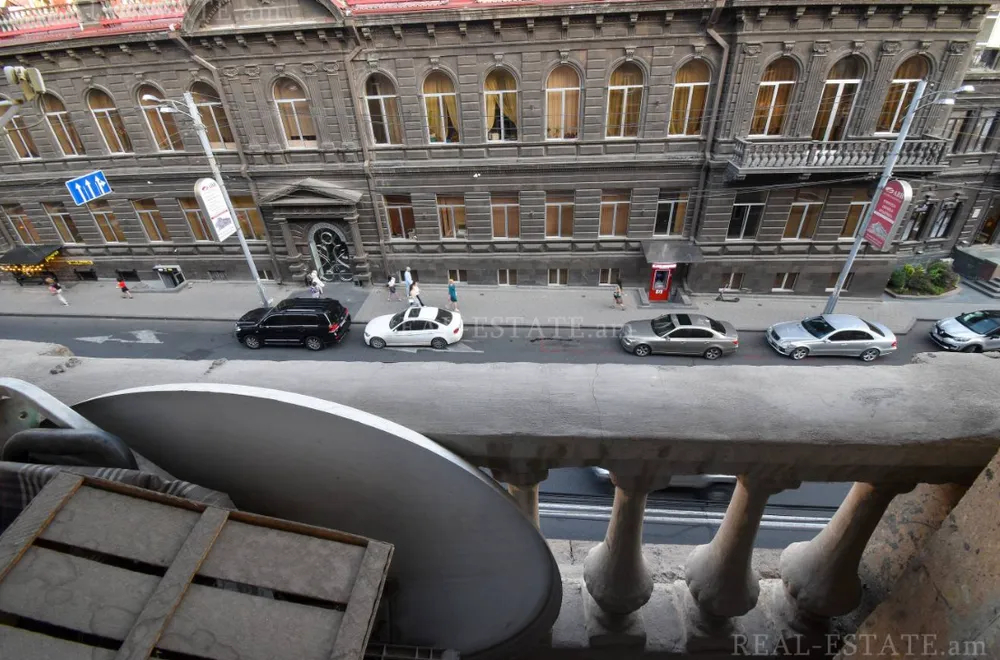Հանրապետության Հրապարակին կից վաճառվում է 4 սենյականոց վերանորոգված բնակարան 5 հարկանի ստալինյան նախագիծ քարե շենքի 4-րդ հարկում։ Բնակարանը ունի 2 շքապատշգամբ(ֆրանսիական)՝ գեղեցիկ տեսարան դեպի փողոց։ Ընդհանուր մակերեսը կազմում է 117քմ, ունի 3 ննջասենյակ, հյուրասենյակ, առանձին խոհանոց, 2 սանհանգույց։ Ունի երկկողմանի արևկող դիրք։ Բնակարանը վերանորոգված է և կահավորված։ Մոտակայքում է գտնվում Հանրապետության Հրապարակը, մետրոն, Վերնիսաժի այգին։