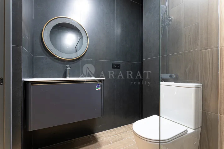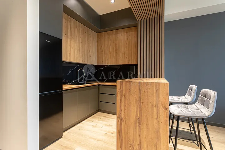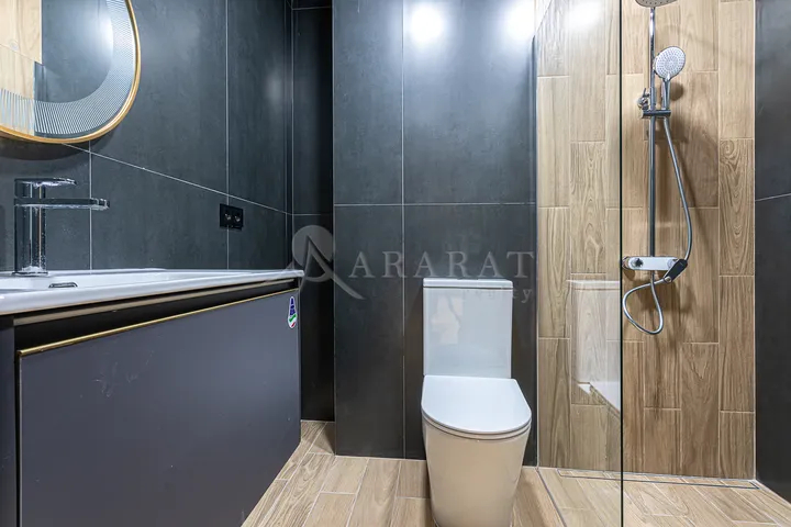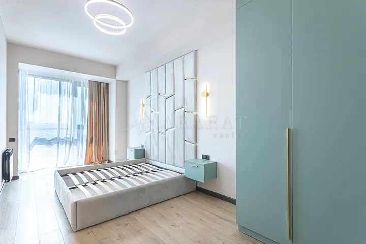 Նար-Դոս և Ռոստոմ փողոցների խաչմերուկի մոտ գտնվող նորակառույց շենքում վաճառվում է 2 սենյականոց բնակարան: Գտնվում է 15 հարկանի նորակառույց շենքի 12-րդ հարկում, մակերեսը 61 ք/մ է, առաստաղի բարձրությունը 3 մ. է: Բնակարանը դիզայներական լուծումներով բարձրորակ վերանորոգված և չբնակեցված է: Բաղկացած է՝ ընդարձակ հյուրասենյակից, խոհանոցից, մեկ ննջասենյակից, մեկ սանհանգույցից և բաց պատշգամբից: Բնակարանից բացվում է գեղեցիկ տեսարան դեպի Արարատ լեռ: Ջեռուցման և հովացման համակարգերը կենտրոնցված են, առկա է օդորակիչ: Վաճառվում է գույք և տեխնիկայի հետ միասին: