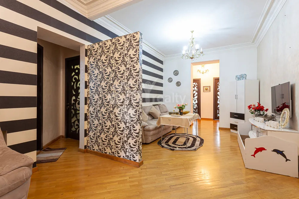 Հանրապետության Հրապարակին կից վաճառվում է 4 սենյականոց վերանորոգված բնակարան 5 հարկանի ստալինյան նախագիծ քարե շենքի 4-րդ հարկում։ Բնակարանը ունի 2 շքապատշգամբ(ֆրանսիական)՝ գեղեցիկ տեսարան դեպի փողոց։ Ընդհանուր մակերեսը կազմում է 117քմ, ունի 3 ննջասենյակ, հյուրասենյակ, առանձին խոհանոց, 2 սանհանգույց։ Ունի երկկողմանի արևկող դիրք։ Բնակարանը վերանորոգված է և կահավորված։ Մոտակայքում է գտնվում Հանրապետության Հրապարակը, մետրոն, Վերնիսաժի այգին։