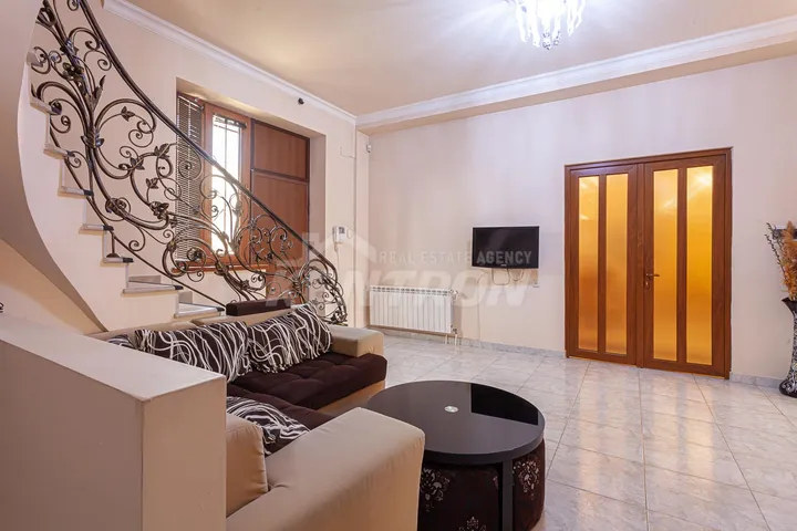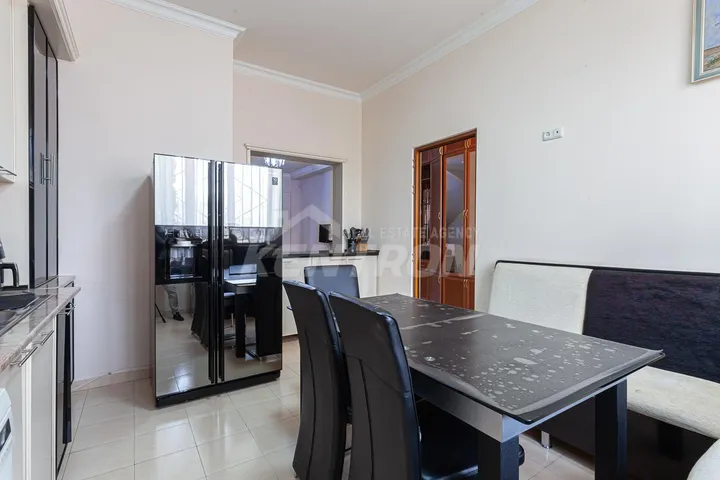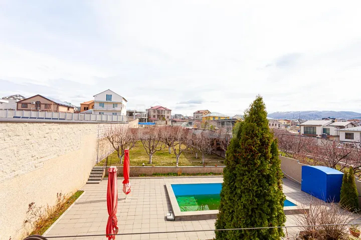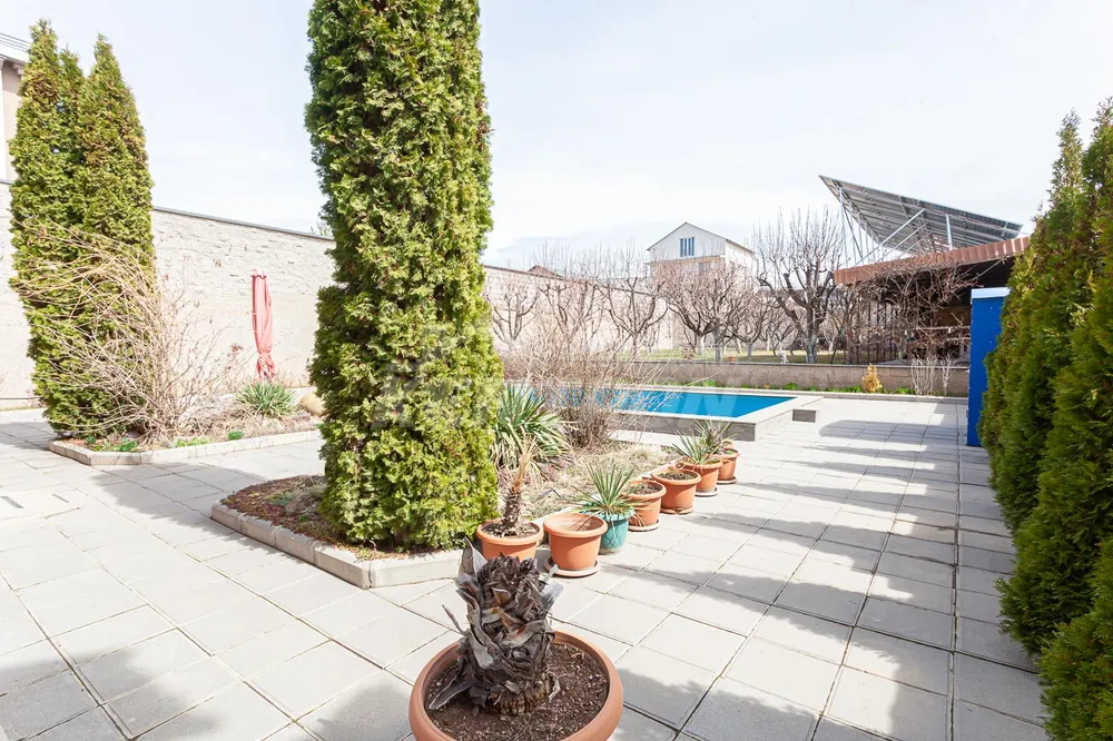 Տան հիմնական առանձնահատկությունները •Բակը բարեկարգ է՝ հագեցած ինչպես բերքատու, այնպես էլ դեկորատիվ ծառերով •Ընդարձակ լողավազան •Ծածկապատ տաղավար՝ հարմարություններով՝ ամառային ժամանցի համար •Տունը ունի շատ մեծ Էներգախնայողություն՝ տաղավարի տանիքին տեղադրված արևային էլեկտրակայան, որը ամբողջ տարում արտադրում է 25-30․000 կՎտ հոսանք •Տունը հնարավոր է ջեռուցել միայն արտադրված էլեկտրաէներգիայով՝ առանց լրացուցիչ ծախսերի •Առկա է եռաֆազ հոսանք, որը թույլ է տալիս միաժամանակ օգտագործել բարձր հզորությամբ տեխնիկա և հնարավորություն է տալիս անհրաժեշտության դեպքում ավելացնել համակարգի ընդհանուր հզորությունը՝ նոր էլեկտրական պանելներ կամ սարքեր ավելացնելիս •Տանը տեղադրված է հոսանքի շարժիչային գեներատոր՝ որպես ռեզերվային աղբյուր •Ջրի համար նախատեսված մեծ պահոցներ՝ ջրամատակարարման խափանումներից պաշտպանելու համար •Ավտոտնակ՝ նախատեսված 2-ից 4 մեքենայի համար •Բակում հնարավոր է կայանել 5 և ավելի ավտոմեքենա •Ավտոտնակում տեղադրված է էլեկտրոմոբիլի լիցքավորման կայան •Ավտոտնակի հատակը ջեռուցվում է •Տան առաջին հարկում հատակը նույնպես ջեռուցվող է •Հյուրասենյակում՝ գործող բուխարի •Տանիքը կերամիկական է՝ բարձր որակի և դիմացկուն նյութերով •Երկրորդ հարկում՝ ննջասենյակների հատակը կաղնու փայտից բարձրորակ մանրահատակ է Առանձնատունը վաճառվում է ամբողջ գույքով և տեխնիկայով