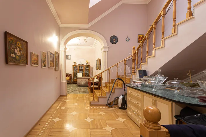 Ծարավ Աղբյուր փողոցի հանգիստ և անաղմուկ հատվածում։ Առանձնատունը գտնվում է Քանաքեռ-Զեյթուն համայնքում։ ▫️Հողատարածքը՝ 1660 ք/մ▫️ ▫️Առանձնատունը՝ 941 ք/մ ▫️ Առանձնատունն ունի՝ ➖2 հյուրասենյակ ➖2 խոհանոց ➖աշխատասենյակ ➖2 բաց տեռասսա,հիանալի տեսարանով։ ➖4 ննջասենյակ (որից 2-ն առանձին սանհանգույցներով) ➖լվացքասենյակ ➖6 սանհանգույց ➖խաղասրահ, մարզասրահ և բաց ավտոկայանատեղի՝ 4 մեքենաների համար: Առանձնատունը շրջապատում է բարեկարգ և կանաչապատ նմանը չունեցող այգին: Այգում կա՝ զրուցարան, ամառային խոհանոց, սանհանգույց, մանղալ, խորդանոց և կաթսայատուն:
