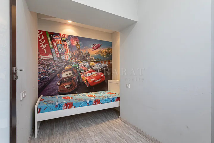 Վաճառվում է կապիտալ վերանորոգված 3 սենյականոց բնակարան (ձևափոխված 3 լուսավոր ննջասենյակի)՝ Մերգելյանում, Հակոբյան 8 հասցեով։ Բաց հատակագիծ՝ միացված հյուրասենյակ և խոհանոց, առանձին լոգասենյակ և սանհանգույց։ - 80.2 քմ, քարե շենքի 5/5-րդ հարկ, արևելք-արևմուտք լուսավորությամբ։ - Ունի բաց պատշգամբ հիմնական ննջասենյակից։ Բնակարանի մասին - Կապիտալ վերանորոգում՝ նոր տանիք, պղնձե էլեկտրալարեր, ջրախողովակներ, ջերմամեկուսացված պատուհաններ - Ջեռուցման համակարգ և օդորակիչ - Բաց հատակագիծ՝ միացված խոհանոց և հյուրասենյակ, 3 ննջասենյակ - Բարձրակարգ եվրոպական ներքին դռներ, իտալական և գերմանական լուսավորություն, ֆրանսիական ձգվող առաստաղներ - Պատվերով ներկառուցված պահարաններ և դարակաշար - Ժամանակակից խոհանոց՝ չժանգոտվող պողպատից սարքավորումներով, Corian աշխատանքային մակերեսով, կարծրացված ապակե պատի երեսապատմամբ - Մասամբ կահավորված և հարդարված՝ եվրոպական թանկարժեք կահույք, բրդյա գորգ, խոհանոցային սարքավորումներ, փոշեկուլ, 32" հեռուստացույց Տեղադրություն - Քայլելու հեռավորության վրա՝ Բարեկամություն մետրո, սուպերմարկետներ, գյուղտնտեսական շուկա, սրճարաններ, ֆիթնես կենտրոն, Մերգելյան այգի, Նաիրի Զարյան դպրոց - Խաղաղ և մաքուր՝ զերծ փողոցի աղմուկից ու փոշուց Գինը՝ 154,000 ԱՄՆ դոլար։