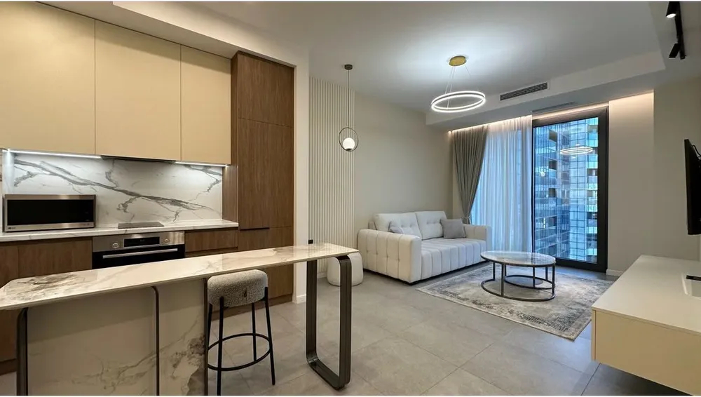 Բաղկացած է՝ Հյուրասենյակից և խոհանոցից՝ ստուդիո տարբերակով 1 ննջասենյակ 1 սանհանգույց Ջեռուցման/հովացման և օդափոխության կենտրոնացված համակարգ Վիտրաժային պատուհաններ ֆրանսիական պատժգամբ Գործում է 24/7 ռեժիմով անվտանգության համակարգ և կոնսիերժ ծառայություն Spa/ Fitness կենտրոն Վերանորոգումն իրականացվել է բարձր նյութերով։Վաճառվում է գույքի և տեխնիկայի հետ միասին
