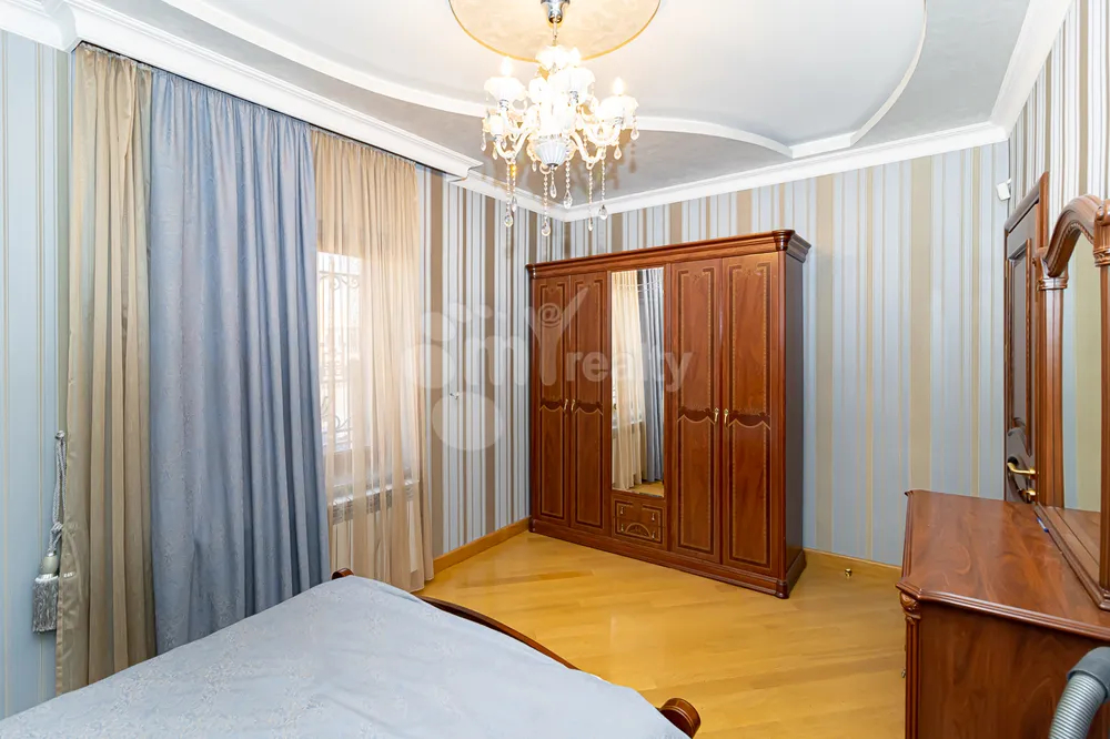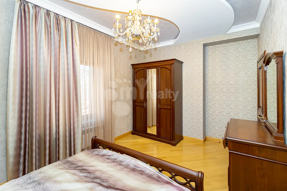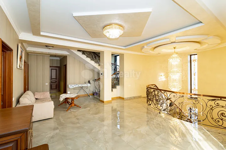 Վաճառվում է գեղեցիկ և ընդարձակ 4հարկանի առանձնատուն Աջափնյակ Գ1 թաղամասում։ Ընդհանուր մակերեսը 840քմ է, բնակելի մակերեսը՝493քմ։ Առանձնատունը ունի ընդարձակ գեղեցիկ բակ, այգի, առկա է փակ լողավազան, ամառային խոհանոց բուխարիով , ընդարձակ նկուղային հարկ, ։ Վաճառվում է կահույք և տեխնիկայի հետ միասին ։ 1ին հարկում առկա է ննջասենյակ։ 4րդ հարկում առկա է ընդարձակ տարածություն, որը կարելի է օգտագործել որպես ժամանցի սրահ։Առանձնատունը ունի նաև բաց և փակ ավտոկայանատեղի։