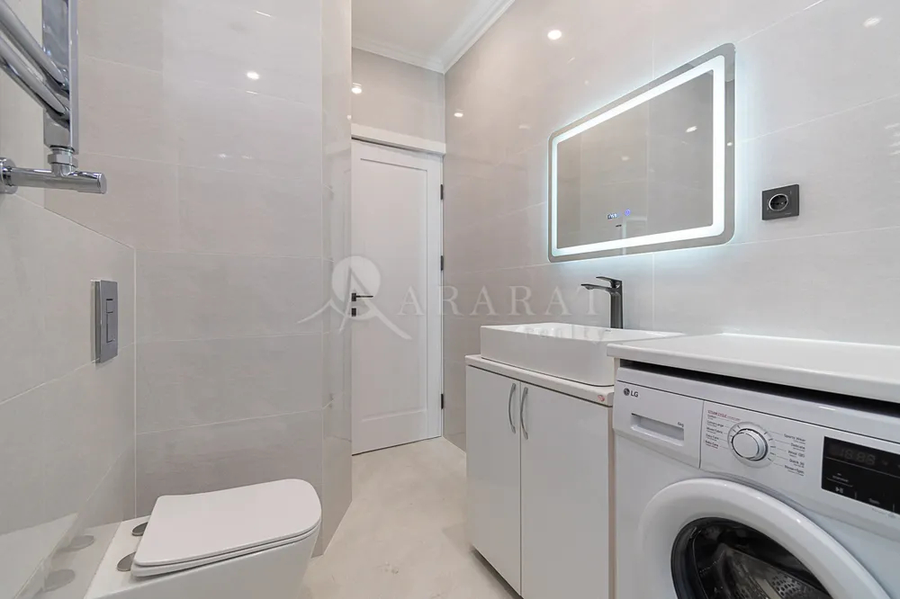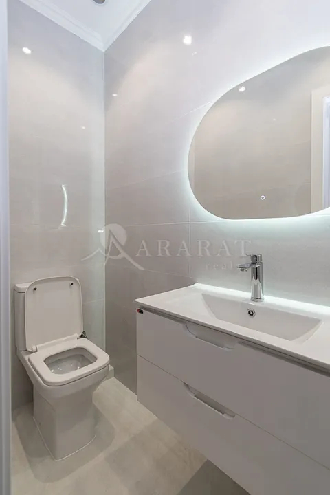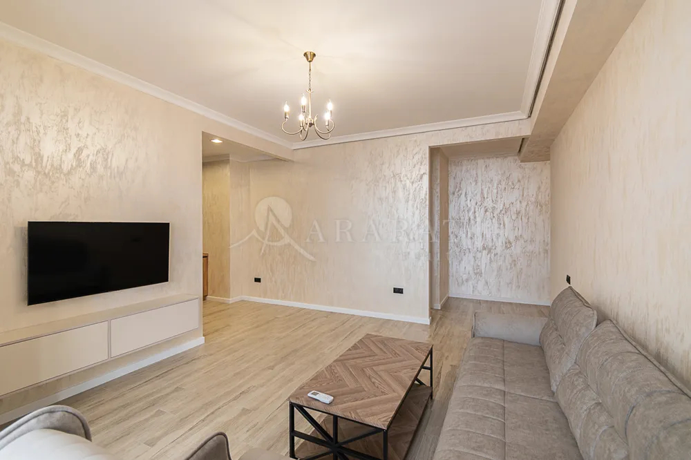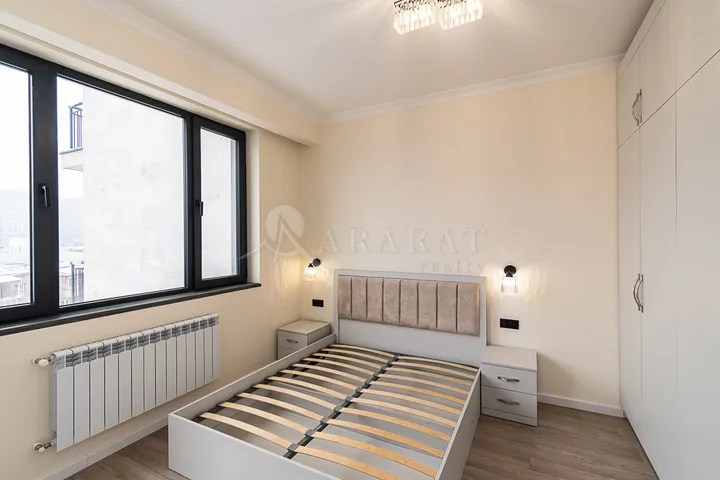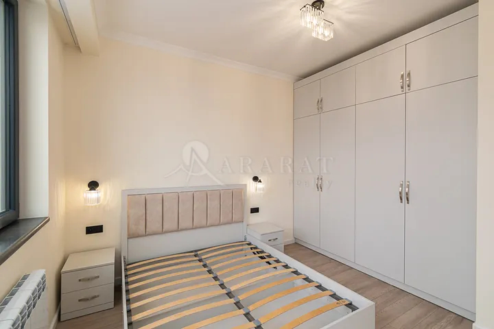 Գրիբոեդովի փողոց՝ նորակառույց շենք։ Ընդհանուր մակերես 75 ք․մ , ունի 2 ննջասենյակ, հյուրասենյակ ՝ խոհանոցի հետ ստուդիո տարբերակով , 2 սանհանգույց , բաց պատշգամբ և վիտրաժային պատուհաններ ; Բնակարանը նոր կապիտալ վերանորոգված է և դեռևս չբնակեցված։ ․