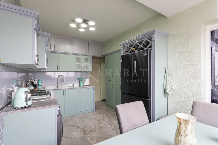 Բնակարանը գտնվում է քաղաքի կենտրոնում 13 հարկանի շենքի վերջին հարկում։Բաղկացած է 2 ննջասենյակից,առանձին խոհանոցից,1 աշխատասենյակից և հյուրասենյակաից։Ընդհանուր մակերեսը 97ք,մ է ունի նաև բաց պատշգամ գեղեցիկ տեսարանով։Վերանորոգումից հետո բնակարանը բնակեցված չի եղել։Վաճառվում է ամբողջ գույքի և տեխնիկաի հետ միասին։